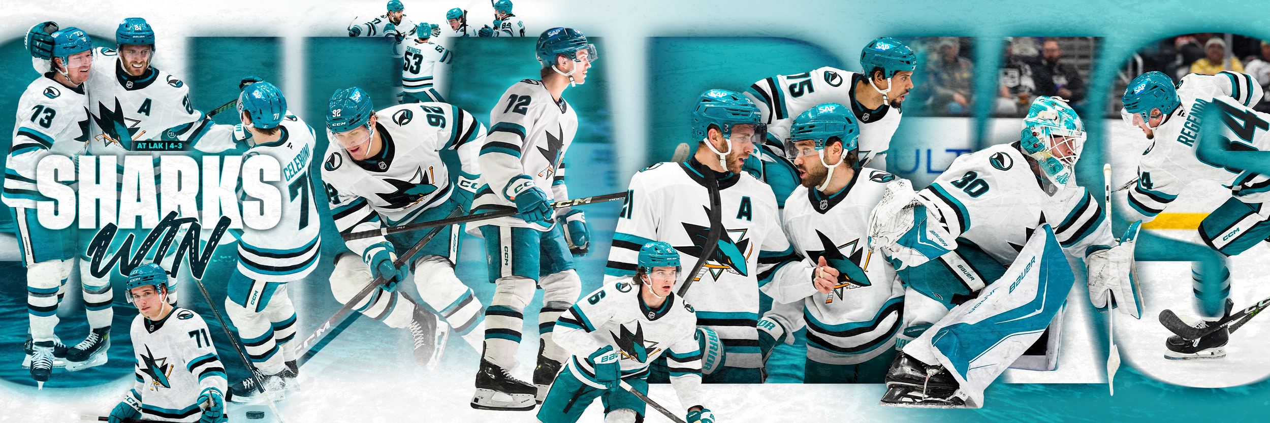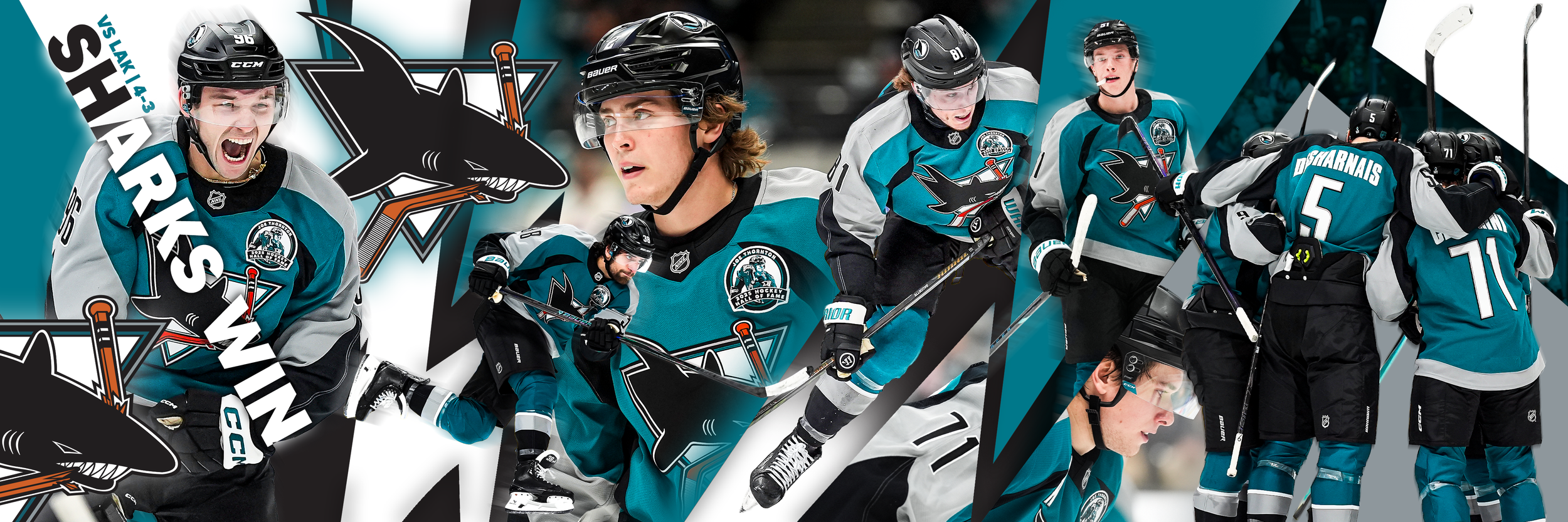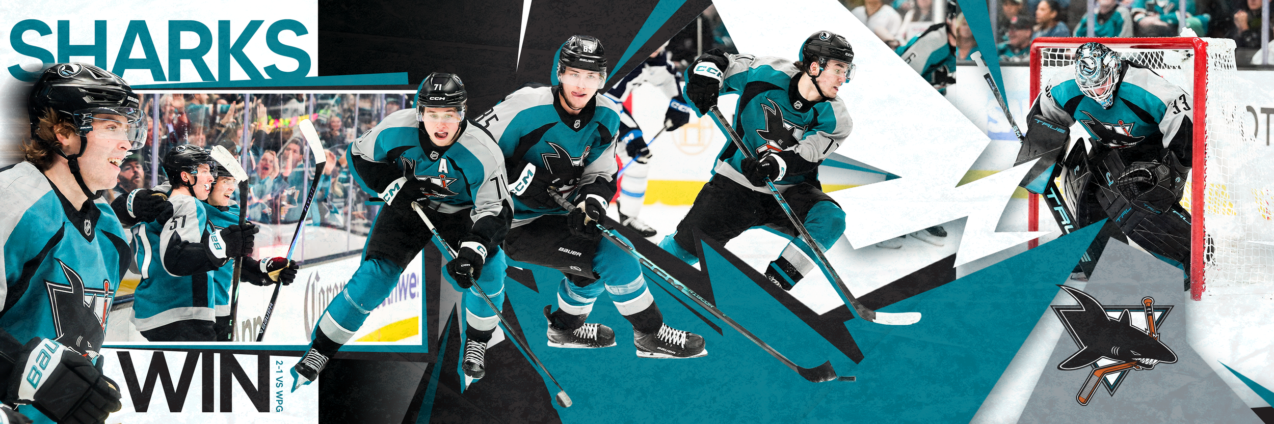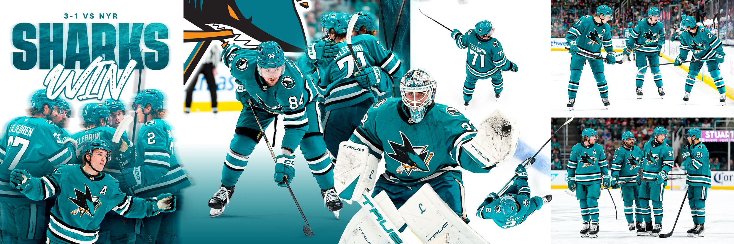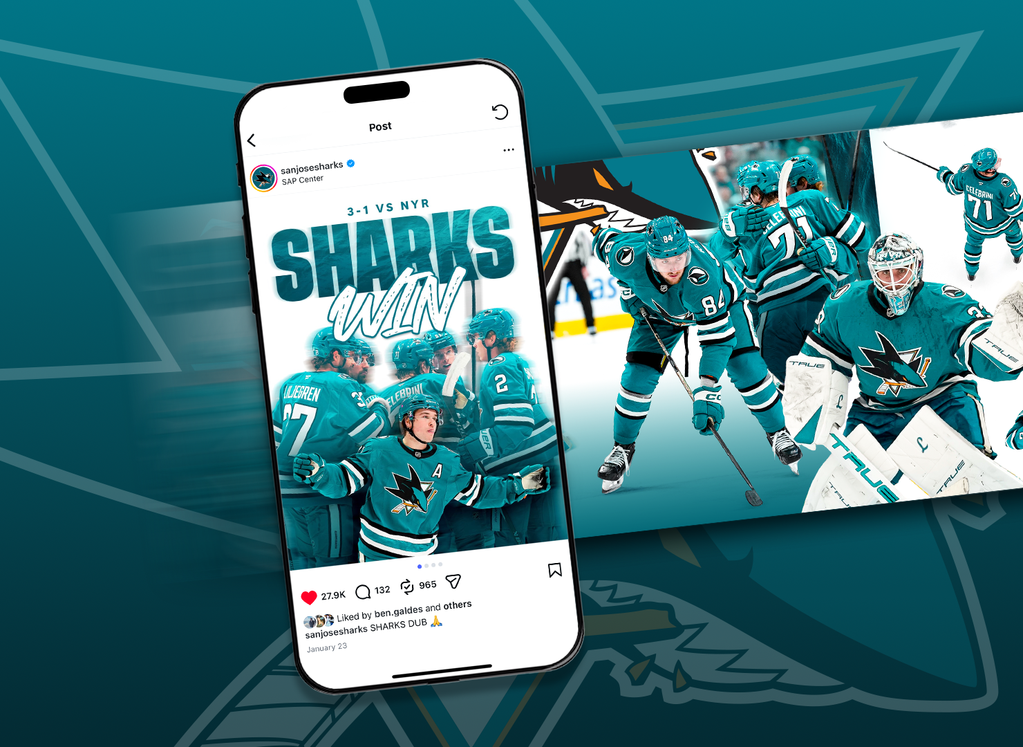 Throughout each San Jose Sharks game – home or away – the San Jose Sharks design team carefully curates a four-slide “Win Carousel” for the social media team to post after a successful win.